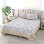 100% Pure Cotton Traditional Printed Bedsheet for Double Bed King Size Bedsheet with 2 Pillow Covers